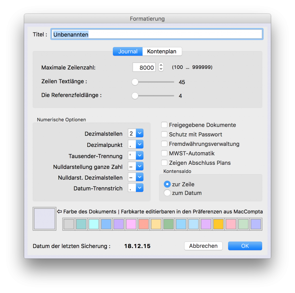 Es ist auch möglich, die Farbtafel zu personalisieren unter MacCompta Pro > Einstellungen.
