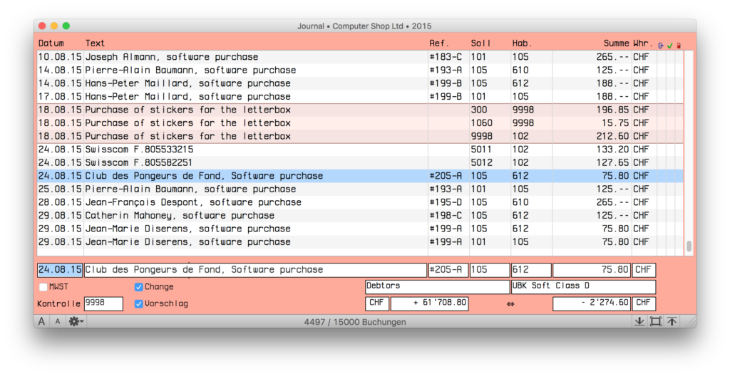 N.B. : Doppelklick auf die Buchung im Journal kopiert sie in die Bearbeitungszeile.